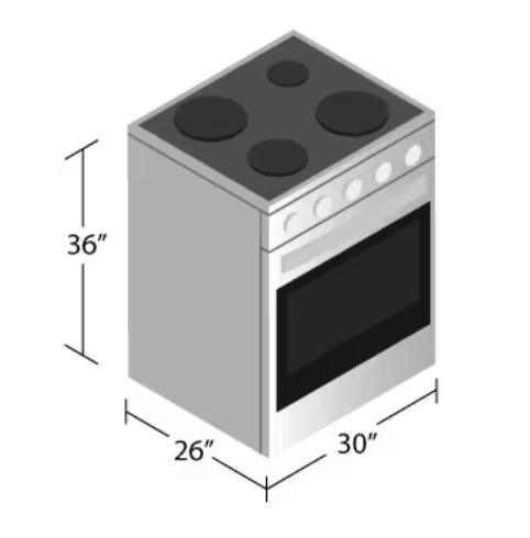 Width: 18″, 24″, or 30″, scalable for appliance housing.
